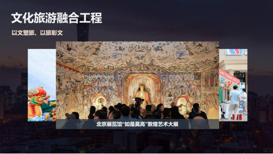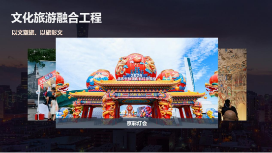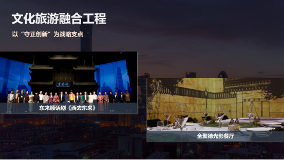 一是文化旅游融合工程。集团深入践行“以文促旅”“以旅彰文”的开展理念,有助于文化和旅游在更深层次、更广范围、更高层次深度融合。集团携手敦煌研究院于最近在北京展览馆打造的“如是莫高”敦煌艺术大展,这是有史以来敦煌走出去的最大一个展览,正在进行第一季展出。我们一共分三季,第一季有八个特窟和三个从未开放的217窟,大家有机会可以去感受一下莫高文化的底蕴。同时,我们将首旅精彩生活节消费IP带到现场,让市民游客在展览现场欣赏到流传千年的敦煌艺术,也能在生活节现场感受到时代潮流的生机与活力。此外,去年中秋国庆期间,我们将四川自贡的非物质文化遗产自贡彩灯带到首都,打造了京彩灯会,成为北京有史以来规模最大的彩灯游园会,短短45天吸引了80万市民游客前往观看。首旅集团旗下有160余个品牌商号,其中16家为老字号品牌。我们以守正创新作为战略支点,深入挖掘老字号背后的历史文化价值。全聚德主力门店换新升级,打造了光影主题餐厅,顺利获得全息影视技术展示老北京人文生活及传统非遗。同时,以全聚德为背景的话剧《天下第一楼》已演出600场。以东来顺开展历程为蓝本的话剧《西去东来》也入选了“话剧看北京”的剧目,展示出集团在保护非遗、传承传统文化、讲好老字号故事的信心和决心。