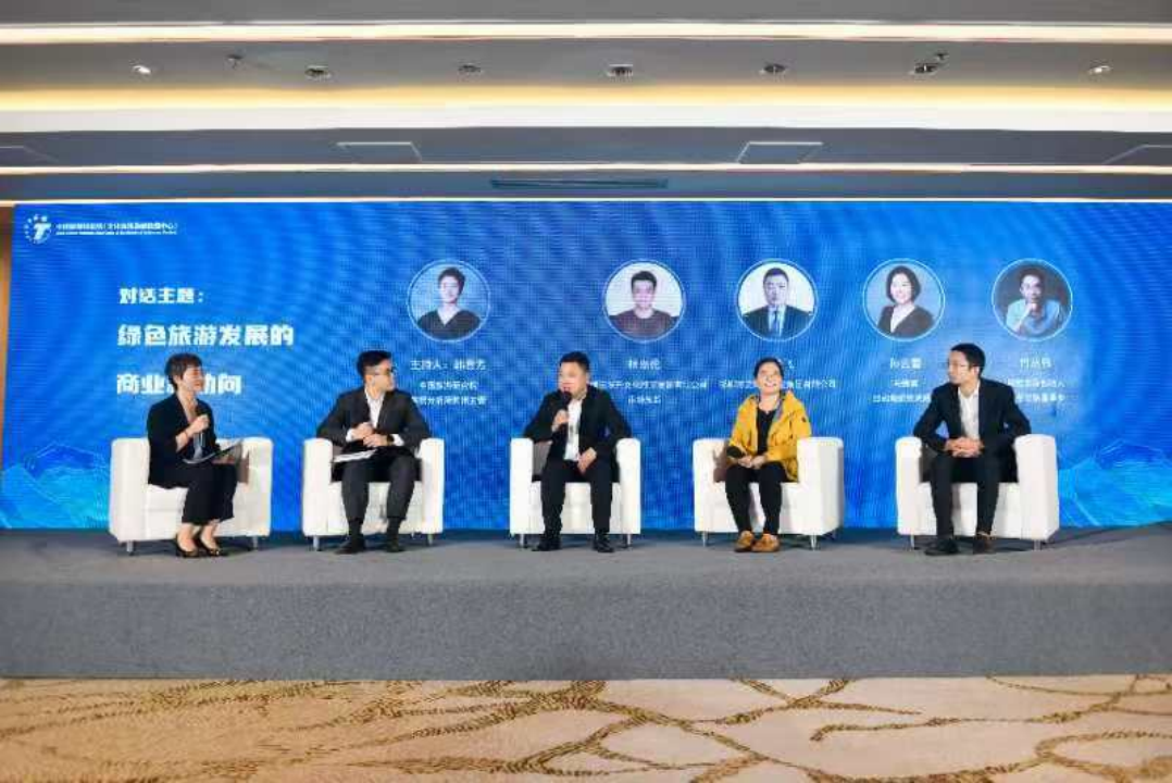 “绿色旅游开展的商业新动向”专题对话环节,韩晋芳博士与深圳市深巴文化旅游开展有限公司市场总监杨嘉伦,邯郸市文体旅产业集团有限公司总经理蒿静飞,马蜂窝目的地研究院院长孙云蕾,树蛙部落创始人、乡意文旅董事长付丛伟进行了专题研讨,对话嘉宾围绕企业如何践行绿色旅游理念展开讨论,从企业业务层面分享了自己的观点。