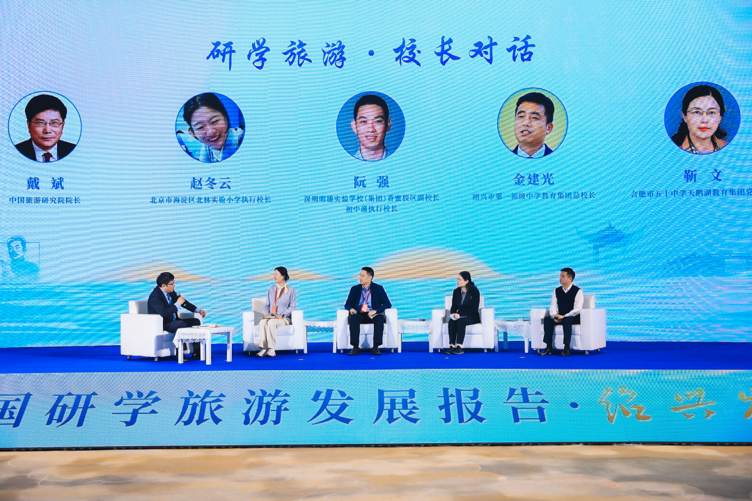 凯发k8国际院长戴斌主持了圆桌对话一:“研学旅游·校长对话”,与北京市海淀区北林实验小学执行校长赵冬云、合肥市五十中学天鹅湖教育集团党委书记靳文、深圳明德实验学校(集团)香蜜校区副校长、初中部执行校长阮强、绍兴市第一初级中学教育集团总校长金建光共同围绕什么是好的教育、家校社如何有效协同、旅行和教育如何相互赋能等议题进行了探讨。