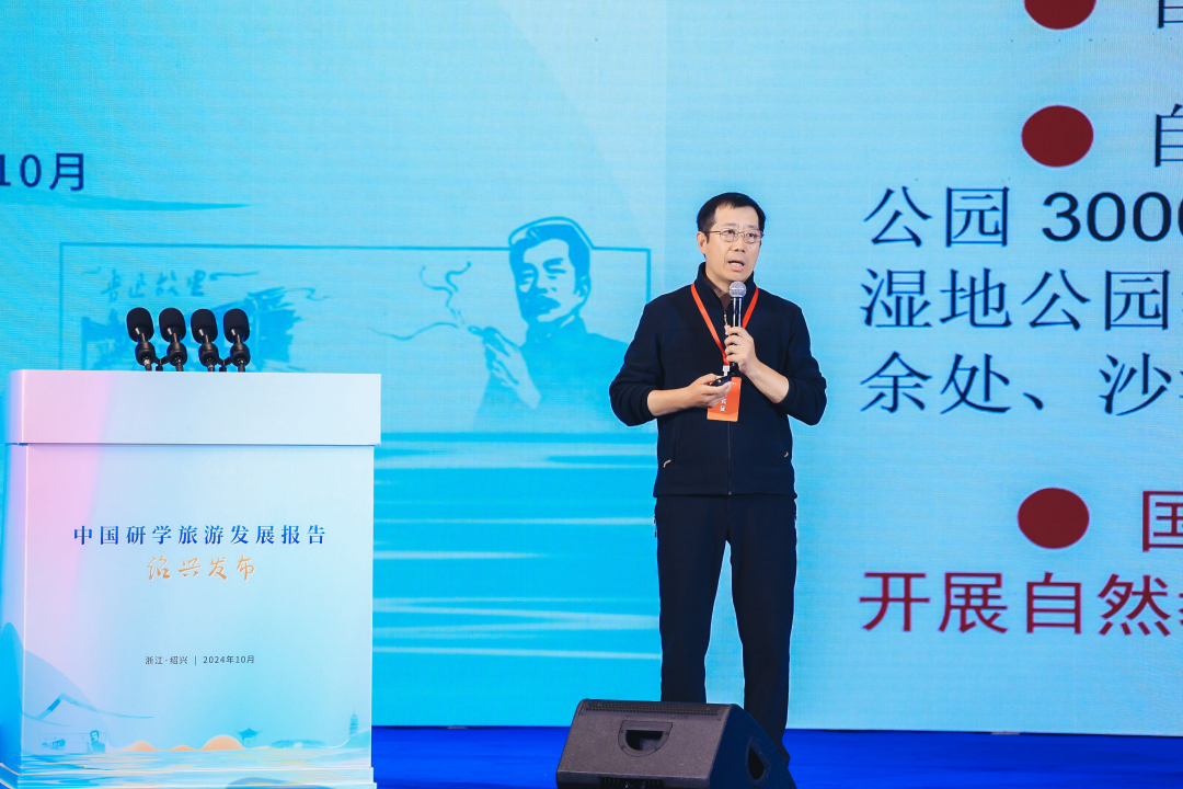 柴焰博士代表研学旅游课题组发布了《研学·城市——绍兴研学旅游开展报告》,从城市开展的视角剖析了研学与绍兴城市品牌建设的关系。