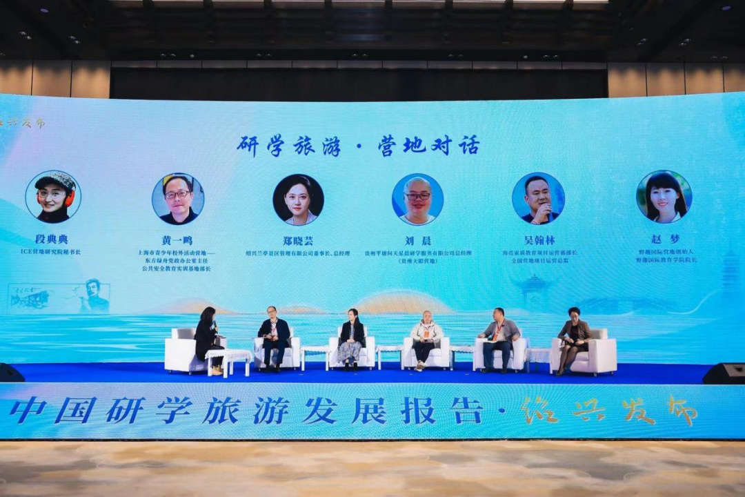 最后,由ICE营地研究院秘书长段典典主持圆桌对话二“研学旅游·营地对话”,围绕我国研学营地建设与开展,与上海市青少年校外活动营地—东方绿舟党政办公室主任、公共安全教育实训基地部长黄一鸣、绍兴兰亭景区管理有限公司董事长、总经理郑晓芸、贵州平塘问天星晨研学服务有限公司总经理刘晨、海亮素质教育项目运营部部长、全国营地项目运营总监吴翰林、野趣国际营地创始人、野趣国际教育学院院长赵梦展开了广泛讨论。