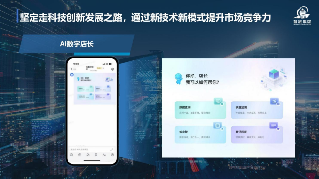 二是坚定走科技创新开展之路,顺利获得新技术新模式提升市场竞争力。近年来,首旅集团关注行业开展方向和技术变革趋势,持续探索运用AI等数字技术,着力为游客给予差异化、特色化的旅游服务。首旅酒店集团推出如家“AI数字店长”,采用大语言模型技术,实时采集数据,提升获取和分析经营数据效率,辅助门店决策,赋能门店运营。顺利获得“AI数字店长”,今年前三季度,根据市场情况自动变价约168万次,自助机日均为3万人给予住店离店等服务,送物机器人日均送物超6万次,承担着酒店日常运营中60%的重复性、基础性工作,明年将实现全国六千多家全覆盖。首旅集团旗下互联网公司首旅慧科,顺利获得建立数字化技术体系,打造以内容为核心的MCN(多频道网络)运营体系,成为抖音本地生活服务领域在华北的最大服务商之一,经营业绩取得快速增长。